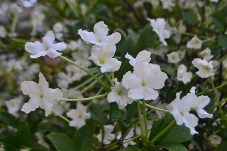 Very nice smell, like vanilla not overly sweet, in the evenings. The flowers start out very white, as above, and quickly turn yellow and fall. Solanaceae of course.