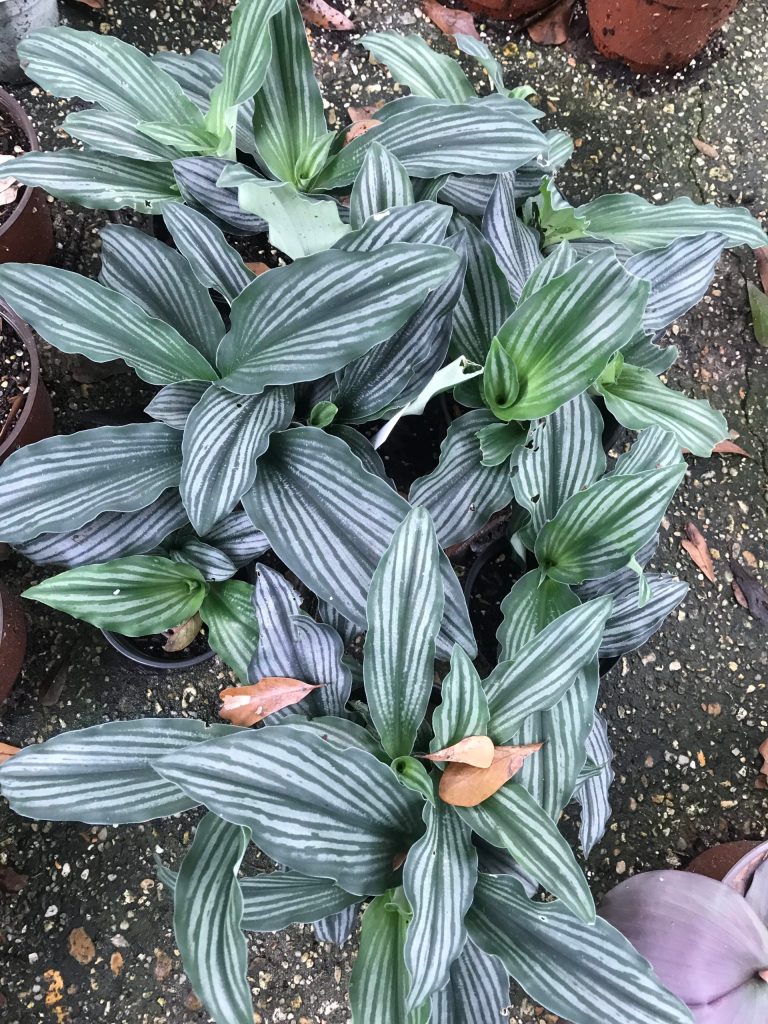 I promise to replace this image with one of my own soon. I’ve noticed the white and green stripes on the picture above are not as distinct on my new plant, but this may change with time. It produces a very pretty white and purple flower which can be seen by doing an internet search.