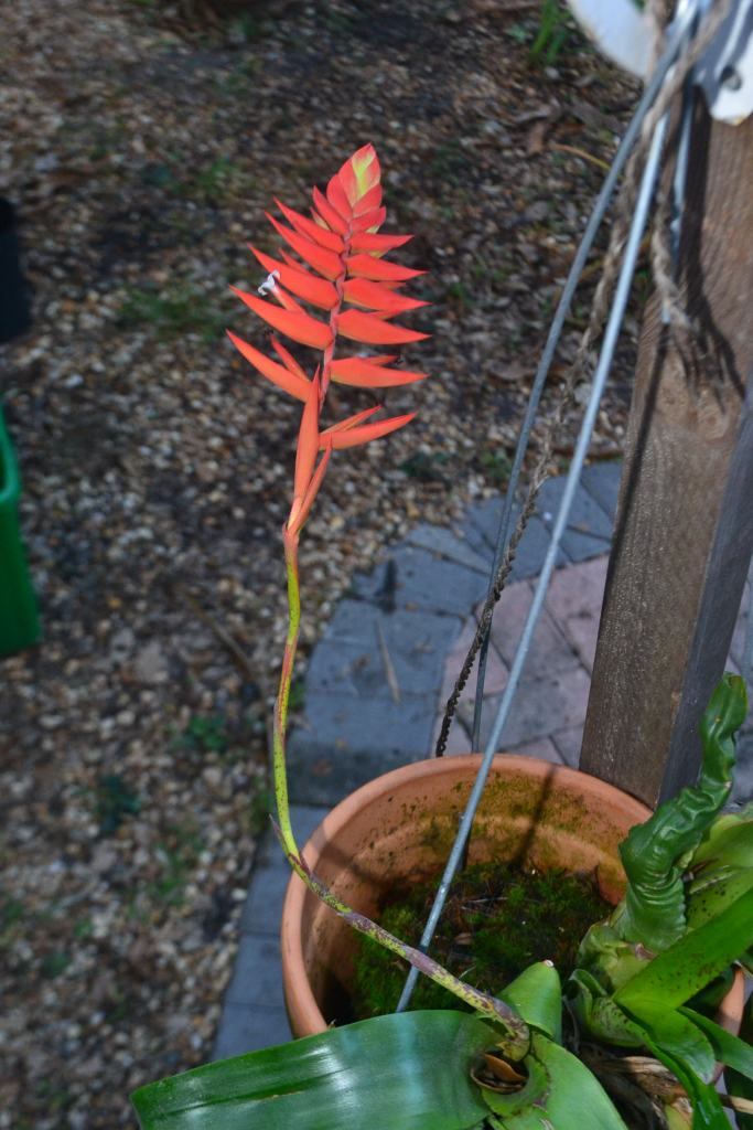 Racinaea dyeriana is an air plant which produces a stunning flower spike, which has tiny white flowers towards the base of the inflorescence. All but one of the flowers were finished blooming when I took this picture.